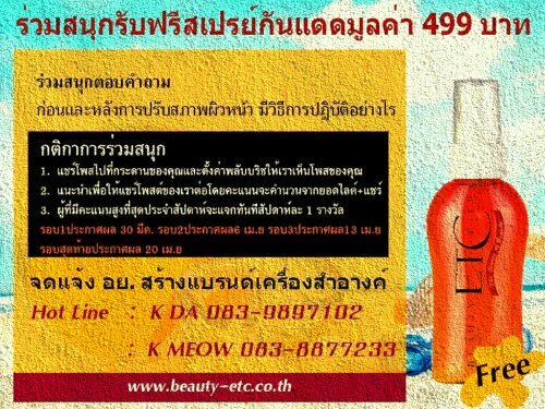 Summer Spary Sun Block SERVICEBy adminมกราคม 25, 2013เพียง ฝากชื่อ-ที่อยู่ในการจัดส่งสินค้า เบอร์โทร และอีเม…